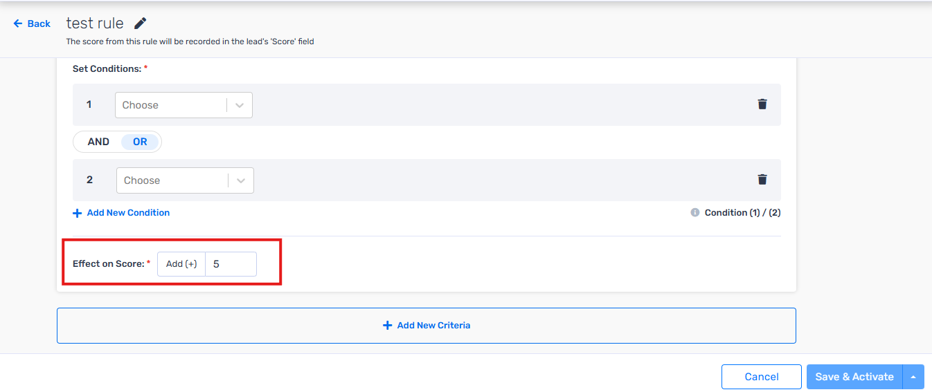 Step 9. You will be able to see the "Save & Activate" and "Save" CTA. Once you click on "Save & Activate" CTA, then that scoring rule will be saved and activated, and you will receive a toast message with the text:
